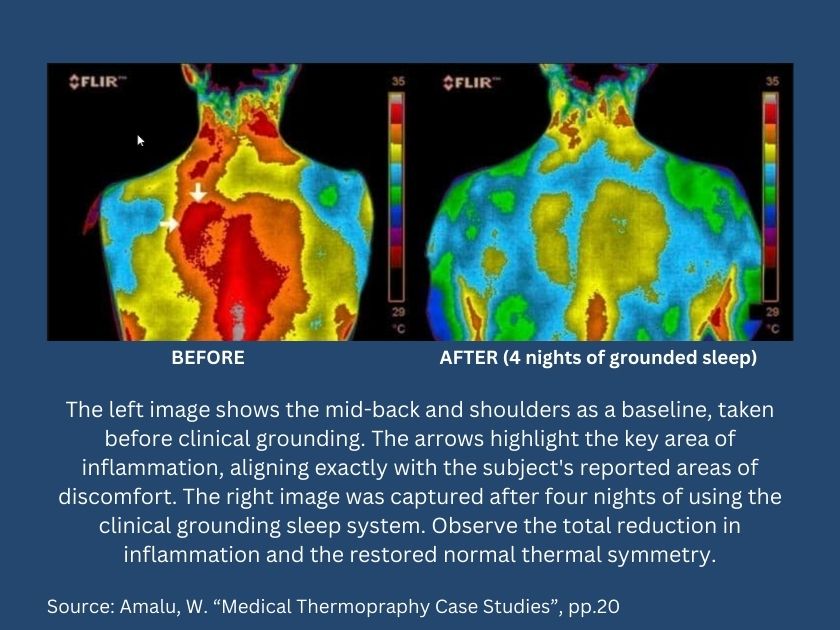Over a decade of scientific research suggests that grounding your body – creating an electrical connection with the Earth – can offer protection, aid healing, and improve overall well-being. Establishing a neutral electrical charge in our bodies through grounding is essential for healing. Grounding sheets serve as a crucial tool in establishing this connection. The accompanying figure illustrates the outcomes of a study that focused on the impact of sleeping while grounded for a duration of eight weeks.